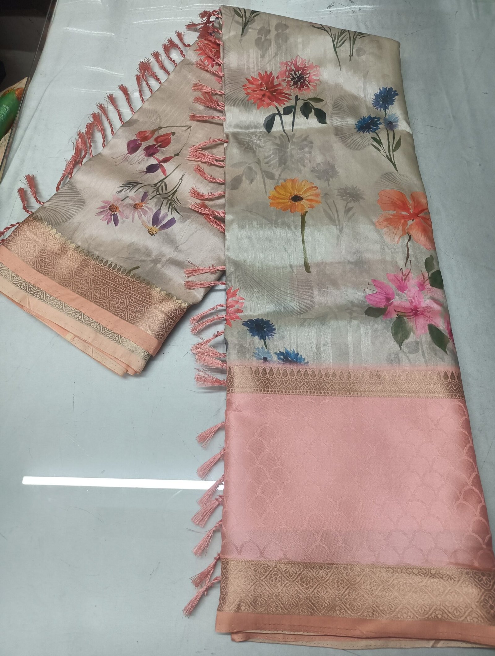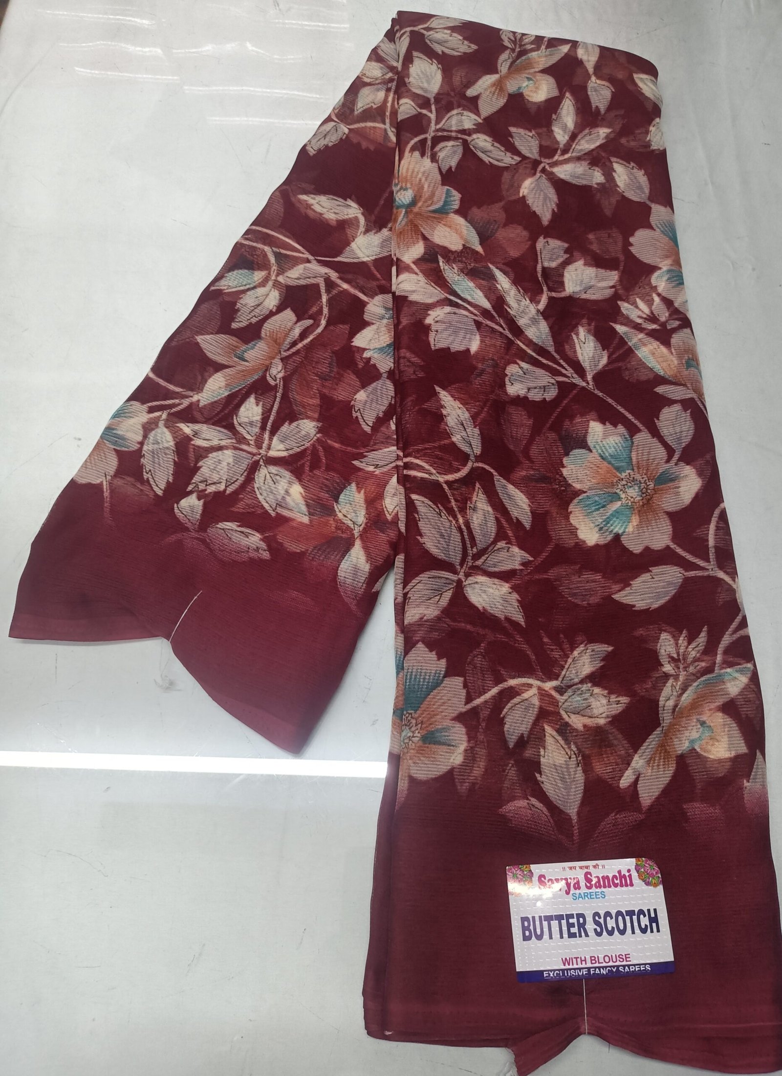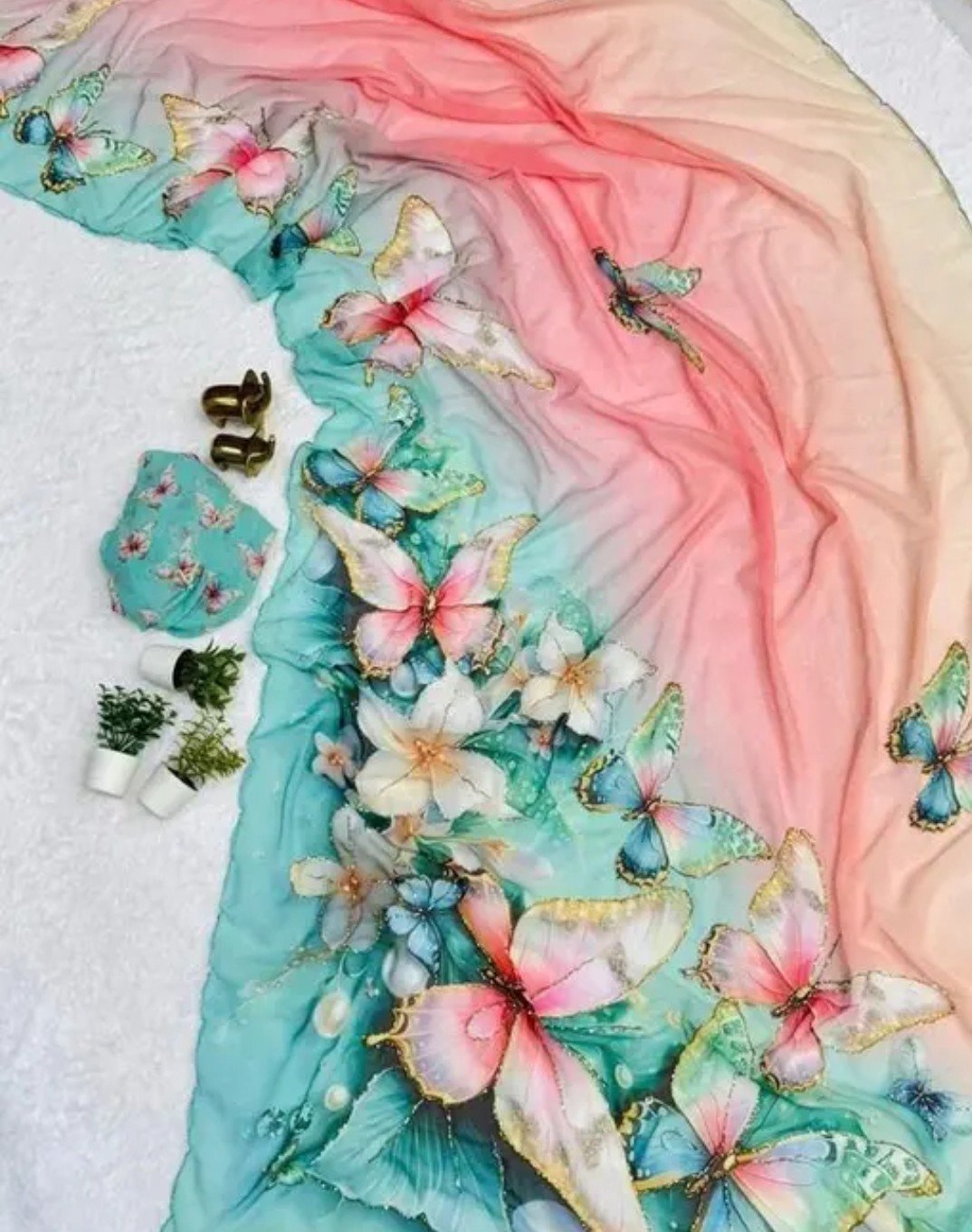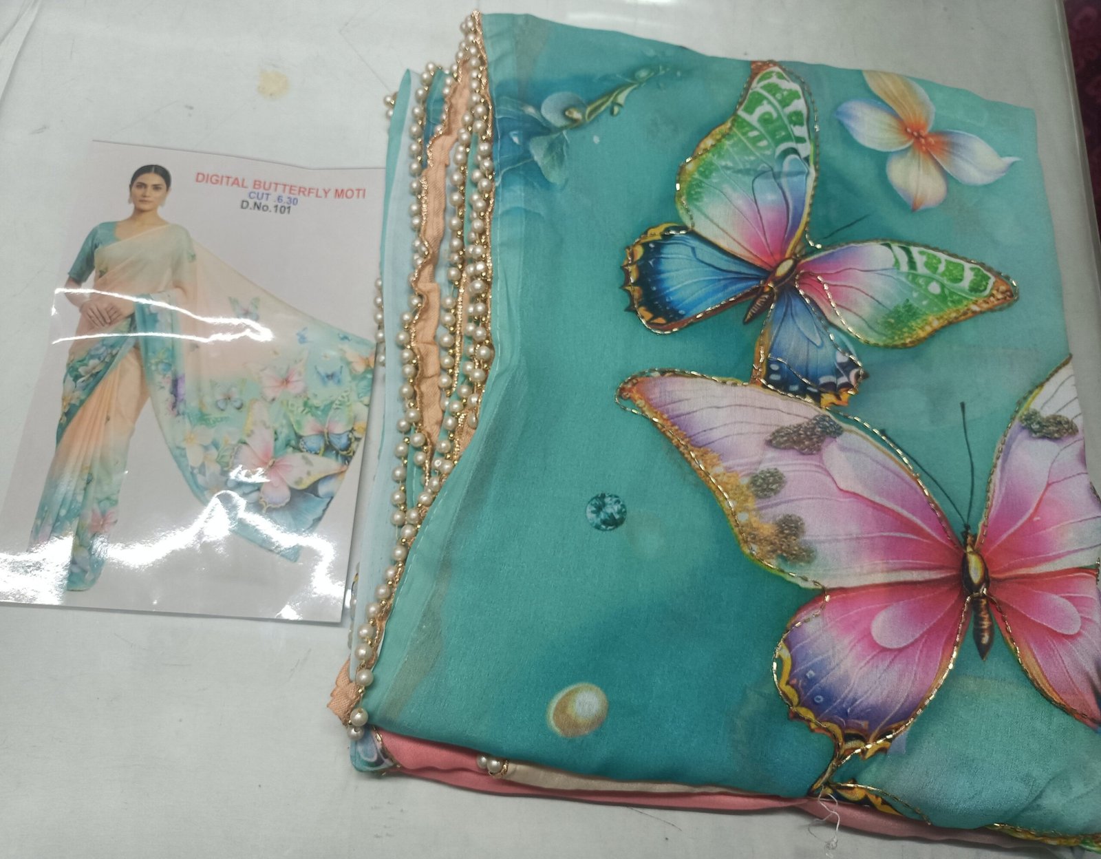 # 1st Quality Digital Butterfly Moti designer Georgette Saree with Blouse