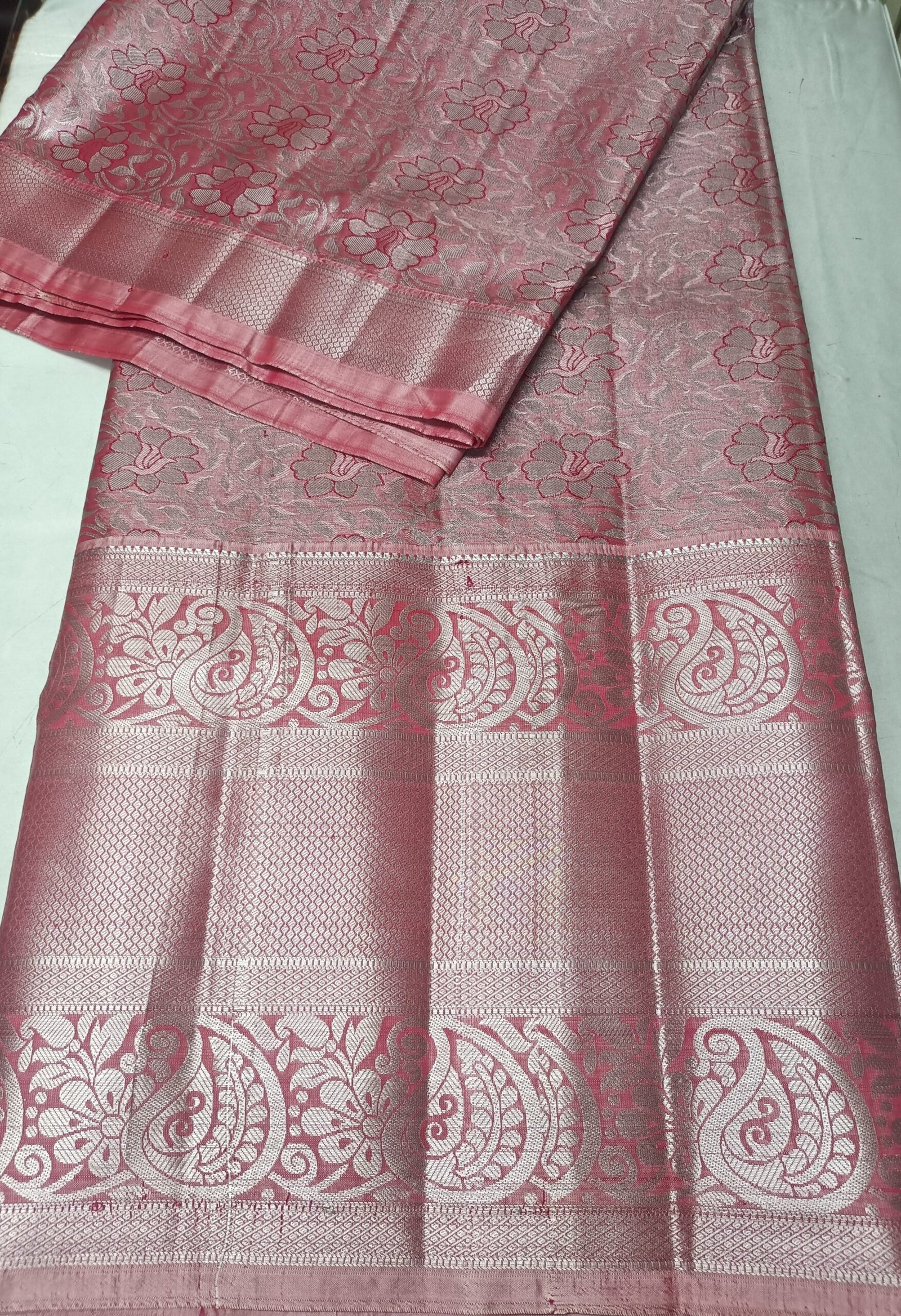 100% Pure Pink Korvai Soft Silk Saree with attract Contras Blouse