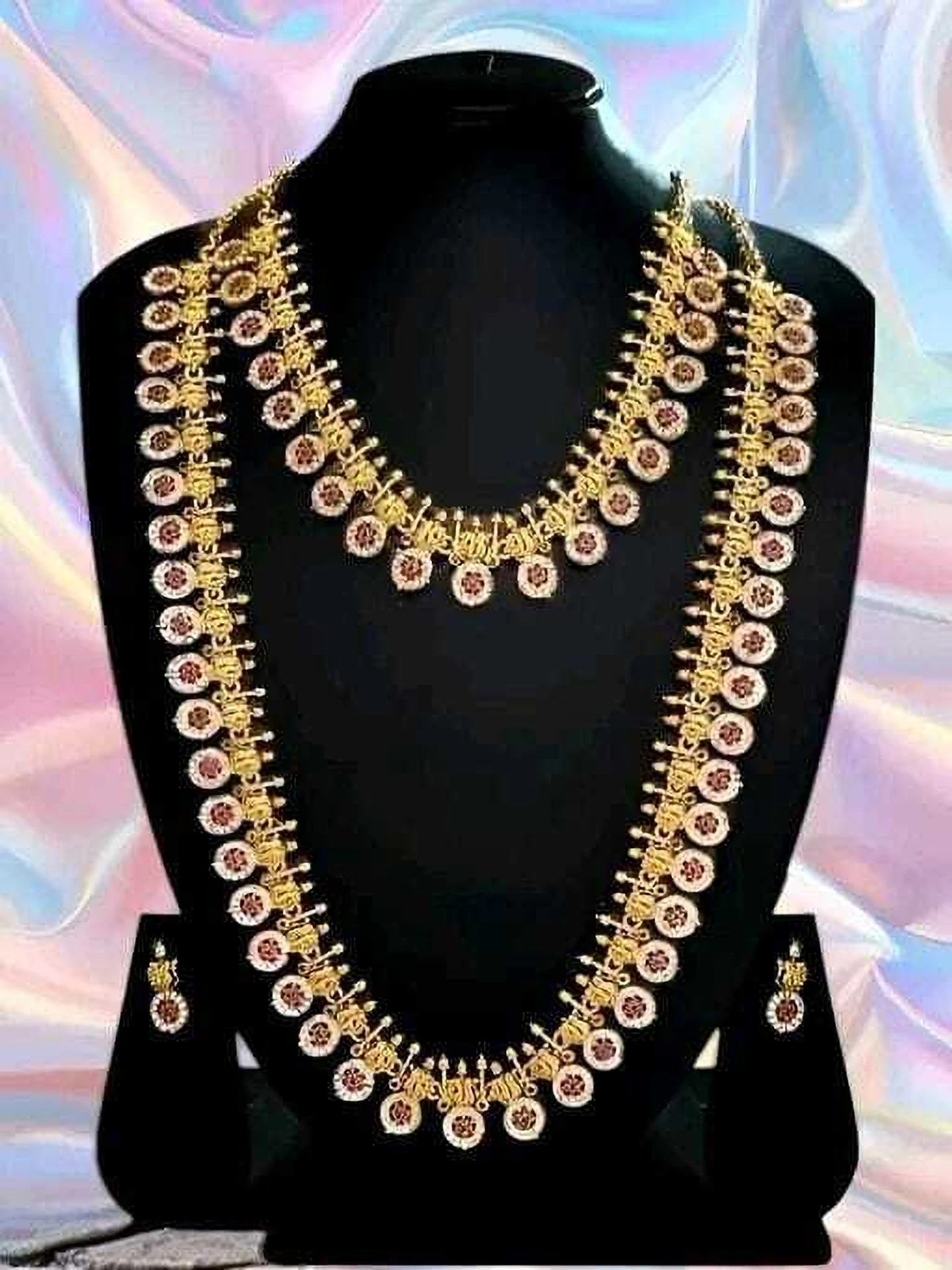 Traditional Temple Jewellery Long Haram with Choker Necklace & Earrings Set for Women