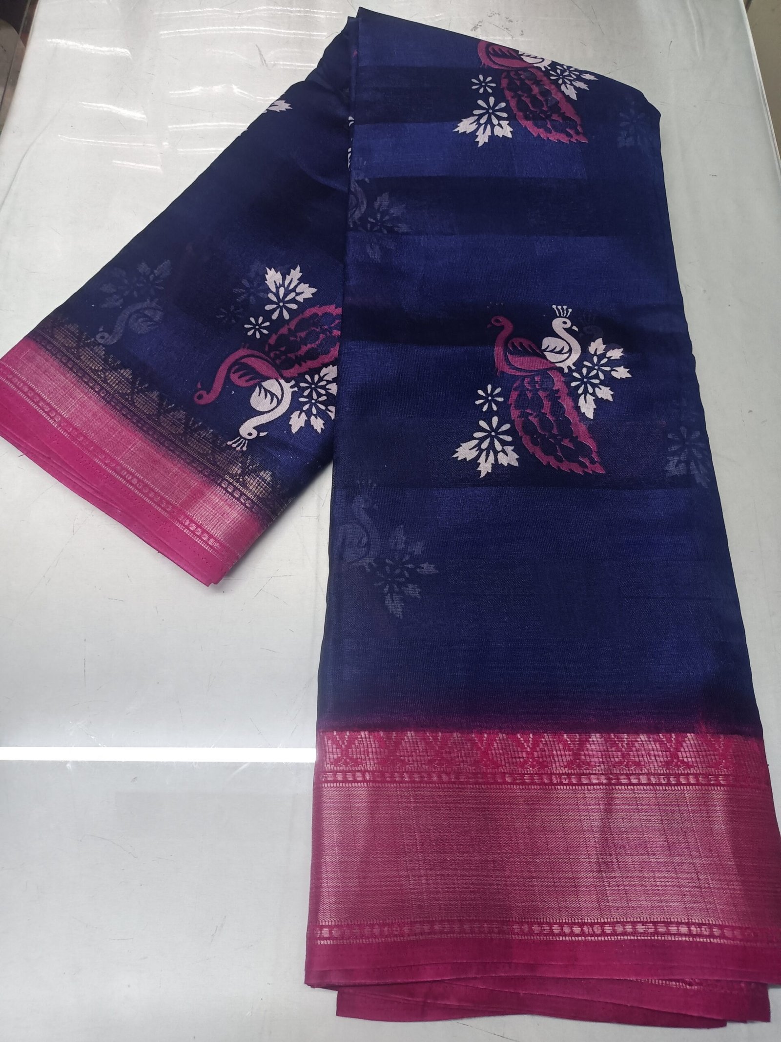 # Lenin Cotton Silk Peacock print Saree with Blouse ₹999.00 Original price was: ₹999.00.₹449.00Current price is: ₹449.00.